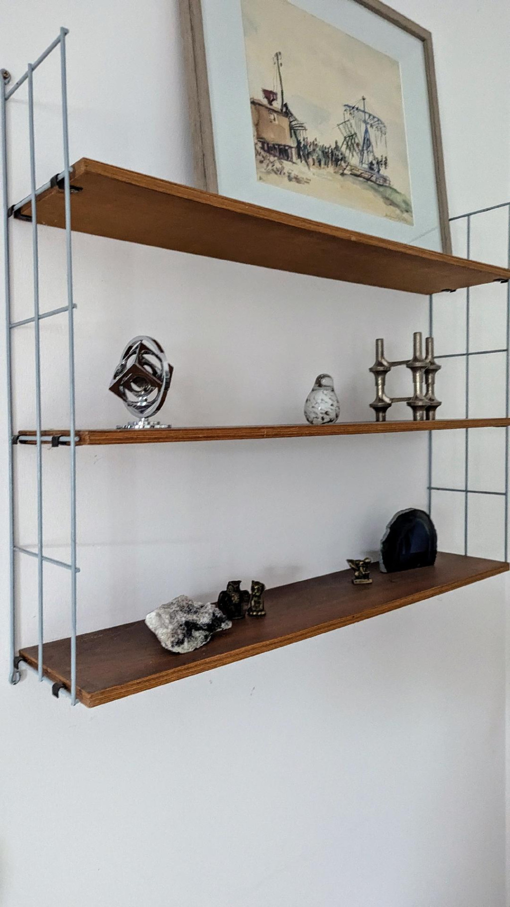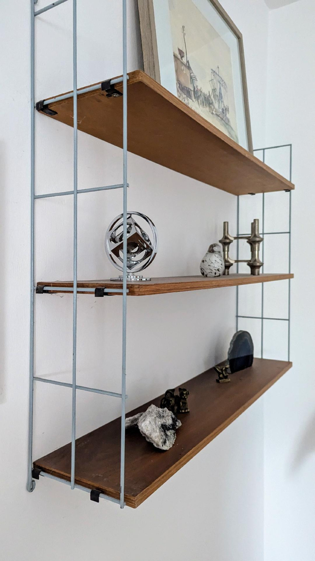 Eladó egy ízléses, fali polcrendszer, amely a klasszikus skandináv dizájn egyszerűségét és funkcionalitását idézi. A világosszürke fém oldalsó tartószerkezethez három natúr fa polclap csatlakozik, így a darab letisztult, mégis meleg megjelenést kölcsönöz a térnek.