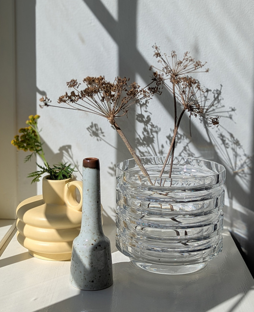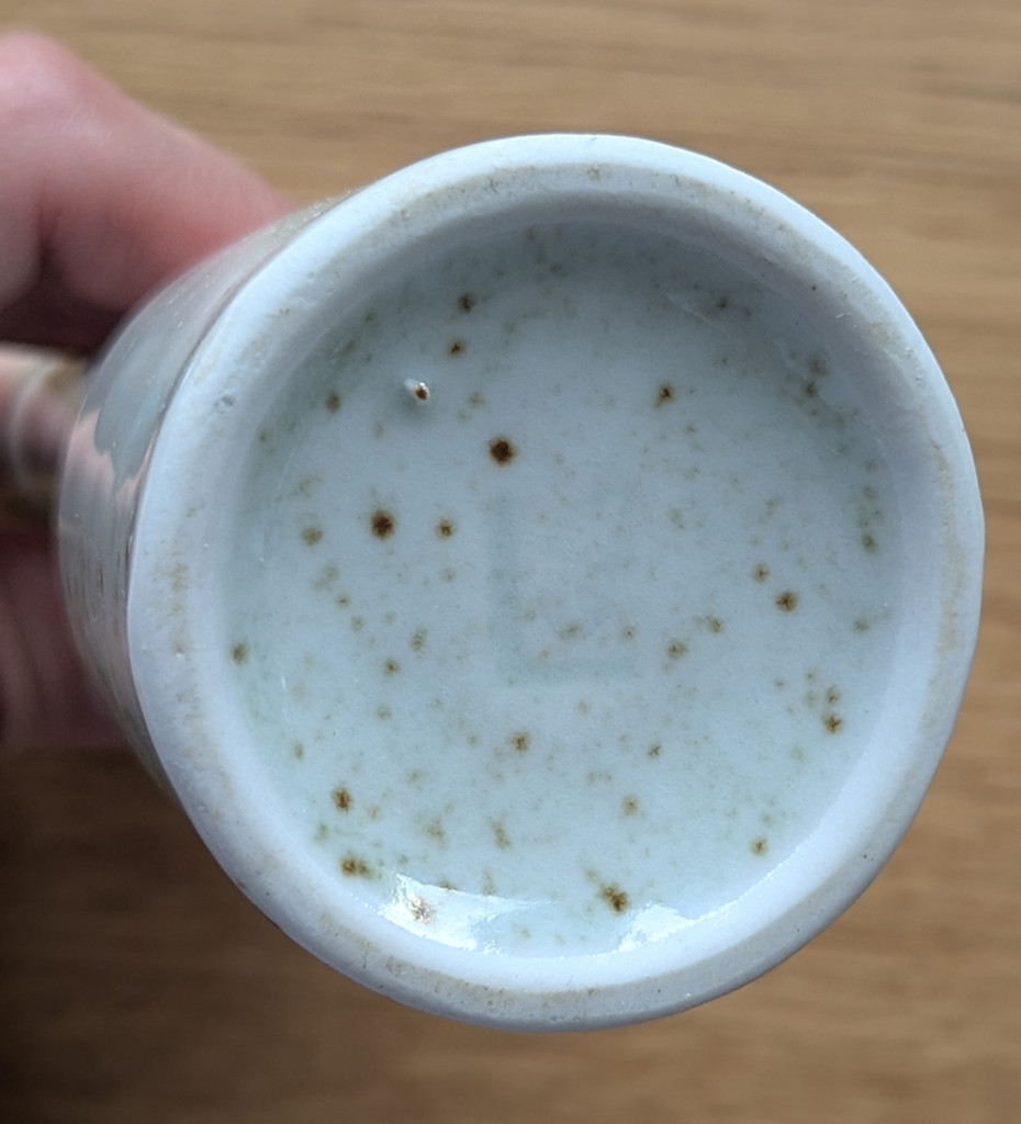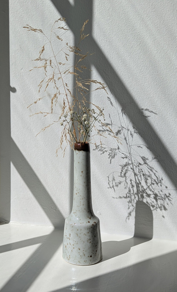 Ez a kézzel készült, keskeny nyakú kerámia váza finoman mázolt felületével és apró pöttyös textúrájával a természetes és skandináv stílus tökéletes képviselője. Egyedi, kézműves darab, hibátlan állapotban. Remek választás ajándéknak vagy saját otthonod különleges díszeként.